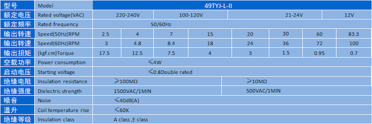 電機主要性能表 SPECIFICATION